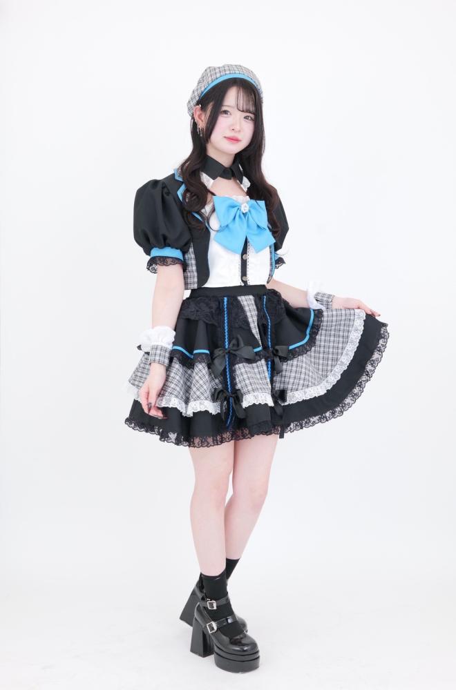 ガイドさんをモチーフにしたオリジナル制服!水色×黒のフリルを基調としたデザインは写真映えも抜群で、普段とは違う自分になれる可愛さがあります♡
