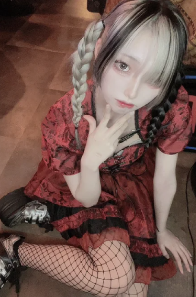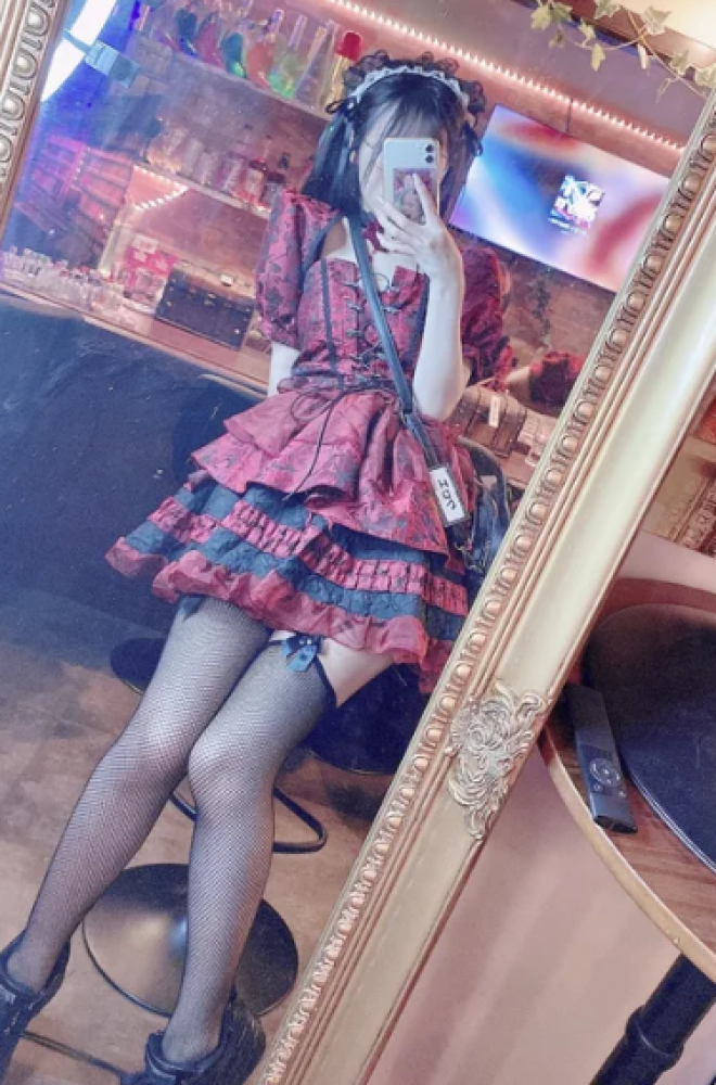 赤黒の細身でロリータな服